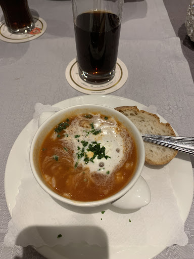 Read moreEin kroatisches Restaurant das sich lokal großer Beliebtheit erfreut. Zur Vorspeise die Tomatensuppe bestellt. Nett angerichtet aber mit einem Sahnehäubchen aus der Sprühdose. Das ginge besser, insbesondere da es sich um süße Sahne handelt. Grundsätzlich sollte man überlegen ob die Sahne überhaupt sein muss. Die Suppe selber heiß und lecker. Tomatig ohne überwürzt zu sein. Die Reiseinlage müsste nicht sein.