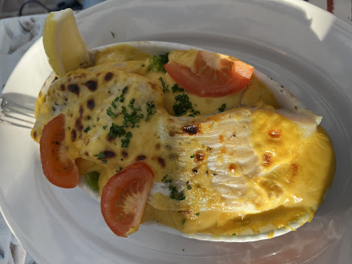 Essen (gebratener Dorsch mit Joghurt-Soße) war perfekt gebraten! Trotz vollem Haus, haben weder Getränke noch die Gerichte lange auf sich warten lassen.