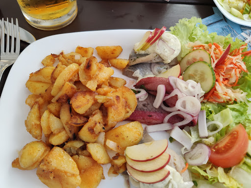 Read morePlakat draussen das sie mehrere Fischsorten anbieten, davon war auf der Speisekarte nichts zu sehen. Der Salat war überwürzt und sah aus wie am morgen schon zubereitet. Das Hähnchen dazu war trocken und hart. Die kroketen von meinem Sohn waren weich und fast kalt. Der Milchreis meiner kleinen Tochter schmeckte nach Wasser und hatte nichts mit ordentlich gequollenen Milchreis zu tun. Die Auswahl an Gerichten war sehr sehr mager. Dieses Restaurant hat eigentlich keinen Stern verdient. Der Service war in Ordnung, aber es wurde sich mehr um andere Gäste gekümmert als um uns. Nach der Rechnung müssten wir fragen , dann erst würden wir beachtet. Die Preise für unterdurchschnittliche Speisen und Getränke...