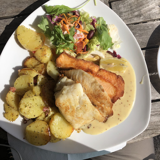 Restaurant: Vergammelte Holzbestuhlung auf der schönen Terrasse, keine Sitzkissen, keine Tischwäsche. Tischwäsche gibt es auch nicht im Restaurant. Freundlicher Service, aber offensichtlich nur angelernte Mitarbeiter. Das Weinangebot ist sehr klein und auf einem enttäuschend niedrigen Niveau. Zum Glück gab es diverse Biere... Die Qualität des Essens konnte leider nicht überzeugen. Derart lieblos zubereitete Gerichte haben wir seit Jahrzehnten nicht mehr serviert bekommen. Das Niveau topt locker jede Kantine, wobei dies nahe an einer Beleidigung für Kantinen ist. Leider konnte man im Hitthim ausschließlich Halbpension buchen...