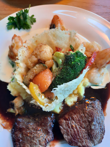 Sehr freundliches leider nicht fachkompetentes Personal. Auskünfte/ Empfehlungen zu Essen und Weinen waren sehr schwammig und unsicher ( lieber nicht noch einmal nachfragen)- besser wäre eine genaue Karte ( könnte ruhig zumindest wochenaktuell bezüglich des Gemüses gedruckt werden-) "Grillgemüse"- was könnte es sein? Das Gemüse war definitiv nicht gegrillt. Schmeckte aber recht okey- lag bei mir in überdimensioniertem weichen Parmesan"körbchen" . Vom Roastbeef musste ich dann doch ein Foto machen. 2 völlig durchgegarte Randstücke ( maximal Perso-Essen!) lagen auf meinem Teller. Geht gar nicht. Nicht lecker! Portweinsoße fein. Den Garnelen fehlte etwas Charakter. Dessert: einmal Tonkabohnen- Créme Brûlée- sehr okey. Und..."Absacker": einmal seeehr viel köstliches Dunkles Johannisbeereis/ Espresso/ schw. Johannisbeerlikör ist ausbaufähig. Alles separat- hat sich mir nicht erschlossen- auch von der Anrichteweise nicht.( Servicekraft meinte, es käme Birneneis " oder so")