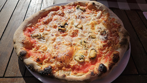 Ich kann die Bewertungen von den anderen Gästen nicht ganz nachvollziehen. Anscheind habt ihr noch nie eine richtige Pizza gegessen. Unsere Pizza war mit Salami, Paprika, Pilze und Käse belegt. Die Pizzaboden hat nach gar nichts geschmeckt. Der typischen Hefeteiggeschmack kam nicht mal ansatzweise rüber. Zudem war sie an den Rändern verbrannt. Die Tomatensauce war echt lasch und faad. Wenigstens ein bissel Gewürze hätten hier gut getan. Die Paprika wurde anscheind erst nach dem Backen auf die Pizza gelegt, so dass diese im Mund noch schnurbsten. Die Pilze schmeckte man auch bloß nicht raus, egal wie intensiv man drauf rumkaute. Die Salami hingegen war ganz gut aber das war es auch schon. Jetzt zum Käse. Das ist ja eigentlich das beste an einer Pizza aber hier, weit gefehlt. Zum einen mußte man überlegen was das überhaupt für ein Käse sein soll (Instantkäse?) und zum anderen war der so fest, dass es im Mund nur noch mehr wurde. Der Käse zog noch nicht mal Fäden beim schneiden bzw abbeißen. Von einer gut schmeckenden Pizza kann hier nicht die Rede sein. Es fehlte ja völlig an Gewürzen. Egal ob am Pizzateig oder auf der Pizza selber. Das einzig positive was man sagen muss, dass die Zubereitung relativ schnell von statten ging, obwohl es gut besucht war. Aber diese Pizza ist und war die schlechteste die ich je...