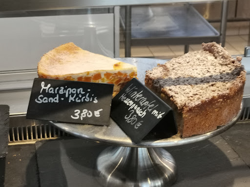 Read moreWir haben das Café an einem Samstag Mittag besucht. Das Ambiente ist wirklich toll, ein hoher Raum, sehr hell mit weißem Mobiliar. Die Stühle könnten etwas weniger Design und mehr Bequemlichkeit gebrauchen, die Toiletten waren sehr sauber und gepflegt. Der Service war sehr freundlich und bemüht, musste aber den Mangel verwalten. Weizenbier? Ist aus! Helle Schokolade? Haben wir nicht mehr, geht auch dunkle? Die Pilzrahmsuppe kam schmucklos (kein Pilz zu identifizieren, kein frisches Kraut oder Croutons), grau und wässrig im tiefen Teller daher. Die Himbeer-Blaubeer-Torte schmeckte wie aus industrieller Großproduktion und es wurde nachvollziehbar, warum die Tortenstücke am Nachbartisch nur halb aufgegessen wurden. Absolut nicht nachvollziehbar ist, dass dieses Café im "Feinschmecker" gelobt wurde. Aber vielleicht sind ja die Pralinen und der...