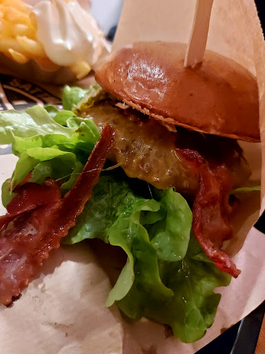 War schon ein paar mal da und liebe es. Burger nach meinem Geschmack. Ehrliche, anständige und bodenständige Gerichte ohne Schnörkel und auf das wichtige beschränkt. Guter Service und angenehme Atmosphäre. Mir persönlich gefällt die Einrichtung. Die trifft meinen Geschmack ziemlich. Getränkeauswahl ist gut und es wird auf gute Zutaten wert gelegt. Preise finde ich fair und ich finde einfach das man für das was man dort bekommt auch den Preis gerne zahlt weil es das Essen alle mal wert ist. Portionen sind ziemlich großzügig. Also wer davon nicht satt wird.... Bin heute Mittag hin weil ich gestern nach einem Konzert ziemlich einen gebrannt habe und nach kurzem Schlaf dann mal was richtiges im Bauch brauchte was wieder Strom gibt. Also bin ich hin und hatte einen Horst mit 2 dicken Patties , fett Zwiebeln und Bacon und Käse. Dazu Salat und die geile Burgersoße Als Beilage leckere Fritten mit röstzwiebeln und verschiedenen Saucen Eine Augenweide Der Burger ein Trümmer wo man als stämmiger, erwachsener Mann beide Hände zum essen braucht Dazu 2 eiskalte FritzKola und mir ging es schlagartig wieder gut Also gerade als Katerfrühstück ist das Top! Ich komm immer...