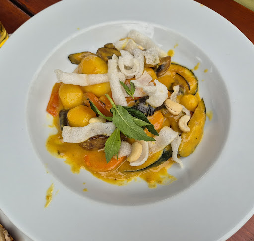 Die Hauptspeisen: "Gebratene Rinderfiletspitzen in Pfeffercreme an Röstitaler" und Pute Hawaii / Curry Hier waren wir leider ziemlich enttäuscht: Die Fleischstücke waren ok, ohne besonders positiv auszufallen. Die Saucen waren ganz schwach, schmeckten doch sehr nach Tütensauce, beide sehr langweilig. Erinnerte deutlich an Fertigsauce von Hersteller Lukull. Dies kann aber auch der Tatsache geschuldet sein, dass es hier im Sommer einen extremen Ansturm gibt und dann nicht die Zeit für handgemachte Saucen bleibt. Die Pfeffercreme war mit sicher 100 Pfefferkörnern stark überwürzt, das Fleisch dadurch kaum zu schmecken. Geschmacklich nicht zufriedenstellend. Die Auswahl der Gerichte auf der Karte war jedoch spannend und vielfältig, machte Appetit. Insgesamt aber leider hierfür eine schwache 4