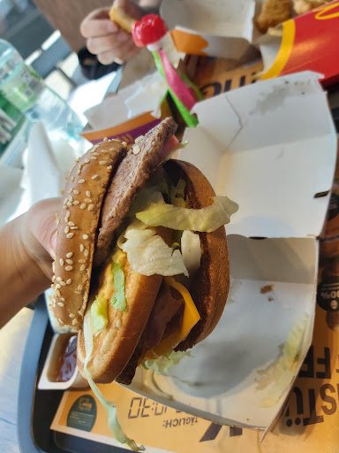 Read moreNa ja , früher hat es mir besser gefallen. Wir hatten Lust Kaffee zu trinken und haben uns im MC Cafe eine Latte gegönnt . Ich wollte ein Caramell Shot , na ja der wurde vergessen. Da schon alles irgendwie durcheinander lief habe ich dann darauf verzichtet. Generell ist es kein Genuss vor Ort zu essen . Es herrscht ein krach und die Öfen pipsen die ganze Zeit . Das geht einem ganz schön auf den Geist . Die neue Art zu bestellen ist nicht ganz schlecht. Am Bildschirm ausgewählt was man wiii mit Karte oder Bar an der Kasse bezahlt, läuft ganz gut 👍. Wir haben aber ach gesehen , das ein Pärchen gar nicht bezahlen konnte , weil der Automat als ein Fehler angezeigt hat . Wir haben uns dann nich Spicy Chicken MC Nuggets und Chili Chees Nuggets zum mitnehmen gegönnt . Das bestellen ging auch gut . Nur wenn man vor Ort isst bekommt man eine Nummer und das Essen an den Tisch gebracht . Wenn man es mitnehmen will , brüllt die Bedienung durch den Raum und man muss es abholen . Also heißt es aufpassen wann man aufgerufen wird . Zum Geschmack, na ja die Chili Chees Nuggets sind Grauenhaft. Und die Spicy Chickem Nuggets sind nicht Spicy . Die Konsistenz ist irgendwie breiig und sie schmecken ungewürzt. Früher habe ich die immer ohne Soße gegessen , das geht heute nicht mehr . Früher war es für uns immer ein Erlebnis mal zum MC Donald zu gehen , heute ist es wirklich nur Essen rein und raus aus dem Laden . Ich finde es auch ,mittlerweile, zu teuer. Bevor ich mir einen Big Mag oder so einen Signature Burger 🍔 hole gehe ich lieber im einen tollen Burgerladen ,da schmeckt es besser , man sitzt besser und hat , beim Essen , eine...