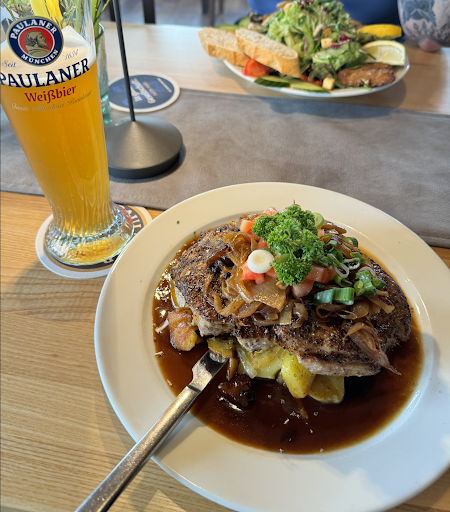 Read moreWe went here for a company event with a larger group and everything was great - the food was tasty and well cooked. Beware - the portions are huge - rumpsteak or hackse should be taken for 2 people, also salads were huge (dont go for salads + second, will be too much). The service was nice and fast, they have good choice of non-alcoholic drinks, beer was cold and nice. If weather is good - the outside sitting with the view on river and old town is an excellent choice. There is also a small place for...