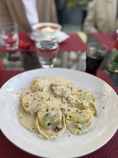 Ambiente : Man kommt ins Lokal und fühlt sich gleich wohl . Die Einrichtung ist toll . Nich zu aufdringlich. Viel Holz und gedämpftes Licht . An der Decke hängen lauter Kupferkessel und die Wände sind , zurückkehren, bemalt. Die Tische sind sehr schön eingedeckt. Im Sommer kann man in einem Innenhof sitzen und für die kalte Jahreszeit haben sie draußen Heizstrahler und Decken auf den Stühlen . Wirklich ein wunderschönes Lokal . Dafür fünf bon fünf Sterne 🌟 🌟 🌟 🌟 🌟. Bedienung : Wir sind von einem älteren Herrn an den Tisch gebracht worden und d erst mal sitzen gelassen worden . Nach einiger Zeit brachte er die Karte . Nennt mich pedantisch . Da fragt jede Bedienung schon , wollen sie was trinken, hier war nix . Erst bei der Bestellung haben wir dann auch trinken bestellt. Es hat sich heraus gestellt , fas es der Chef war . Ich muss sagen wir sind noch nie so unfreundlich behandelt worden . Wir hatten uns einen Vorspeisenteller bestellt . Den brachte dann eine jüngere Männliche Bedienung. Ihm fiel mein leeres Radlerglas nicht auf und wir wunderten und, warum es kein Brot zu den Antipasti gab . Wir hatten fast aufgegessen, da kahm eine ältere weibliche Bedienung, die und dann noch etwas Brot mit Olivenöl brachte . Weiter wurden wir dann von einer jüngeren Weiblichen Bedienung bedient die so ganz freundlich war . Sterne gebe ich hier unterschiedliche. Für den Chef ein von Fünf Sternen 🌟, nur für die Anwesenheit. Für die jünger Männliche Bedienung 3 von 5 Sternen 🌟 🌟 🌟 Und für die 2 Frauen 4 von 5 Sternen 🌟 🌟 🌟 🌟. Alles im allem hat mir die Bedienung den Abend versaut . Essen : Wir hatten einen Vorspeisenteller mit jeder Menge Köstlichkeiten. Unter anderen Vitello Tonato, Carpagio, eingelegtes Gemüse, Mozzarella Tomaten , Italienische Salami und mehr . Für 14 Euro eine Super Sache . Es hat alles wunderbar geschmeckt. Als Hauptgericht hatte ich eine Pizza Toskana. Pizza ist ja nicht gleich Pizza, aber hier ist Belag nicht gleich Belag . Ich habe schon lange nicht mehr so eine geile Pizza gegessen . Ich habe , zum Teil , die Peperoni Wurst runter und pur gegessen. Die war der Hammer. Letztens hatte ich eine Pizza mit Zwiebeln, da wahren so dicke Balken drauf, das alles nur nach Zwiebeln schmeckte . Hier wahren sie schön dünn geschnitten, wie auch die Pilze herlich. Der Boden war so was von knusprig und die Pizza war so toll Gewürzt, klasse . Was mich meistens an Pizzen stört , das der Käse alles bedeckt und man vom Belag sonnst nichts mehr schmeckt. Hier war der Käse unter dem Zutaten, super . Meine Frau hatte Bandnudeln mit Steinpilzen und Rucola. Das Gericht war auch gut , aber es war so viel Knoblauch dran, das man sonst nichts raus schmeckte. Von Steinpilzen war kaum was zu sehen . Und es war viel zu viel Öl auf dem Teller. Zum Abschluss hatten wir und noch ein Tiramisu geteilt . Ich fand es sehr gut , meine Frau hätte gerne etwas mehr Alkohol gehabt 4 von 5 Sternen 🌟 🌟 🌟 🌟 Mein Fazit , das Essen ist toll , das Ambiente richtig toll , aber die Bedienung hat es mir versaut. Es gibt so viele tolle Gastronomie Betriebe, das müsste sich so ein alt eingesessener mehr Mühe geben . Also wir wahren ein Mal da , haben das Essen genossen und gehen lieber wieder zu...
