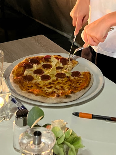 Wir hatten telf reserviert. Als wir ankamen war noch alles frei und wir wurden gefragt drinnen od draussen. Wir wählten drinnen , bekamen sehr schnell die karte und was wir trinken wollten . Ausser ich mussten die 3 andren noch schauen u so baten wir um einen mom . Der Kellner kam dann und nahm gleichzeitig Getränke u Essen auf. Gut hätte ich es gefunden da 3 von 4 P noch ein Wasser wählten das der Kellner wegen einer gr Flasche gefragt hätte. Nein wir bekamen 3 kleine Flaschen zu ins 9,60€🫣 ok vlt auch unser Fehler , keiner hat aufgepasst was bestellt wurde . Das Essen kam auch zügig. Ich hatte Pasta mit Pfifferlingen.Nirgends stande mit Ruccola und Käse (Käseallergie!). Ich hab nichts gesagt.. sondern alles Käse runter gemacht , mein Sohn hats gegessen. Dann waren 3 Personen fertig , eine war noch nicht fertig , wurde abgeräumt. Inzwischen waren draussen einige Tische besetzt. Wo 3 Keller rumliefen. Wir wollten noch gern ein Dessert... aber es kam niemand.. mein sohn ging zur theke, dort war aber keier. Nach uns wurde nicht geschaut od gefragt ob wir noch was wünschen sei es Essen od zutrinken. Mein Mann rief dann als der Kellner reinging.. zur Antwort ich komme gleich. Nach dem Dessert das selbe beim zahlen. Wären sie nicht nett u freundlich gewesen hätte ich dem Service 1 *. Service geht anders bei über 150 € Euro für Essen . Zumal es ein Geburtstagsessen war. Auch wenn draussrn mehr zutun war, so hätte man öfters schsuen können. Vom Geschmack des Essens war es ok, aber auch bei der Pizza , pilze wurden gestrichen dafür schinken. Es wurden 3 euro zu dem Preis dazu gerechnet- 16€für die Pizza ist echt heftig . Ob wir nochmal hingehn...