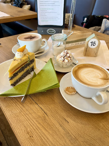 Auf der Rückreise aus dem Urlaub sind wir hier zum Kaffeetrinken eingekehrt. Die "Hauptlokalität" war voll besetzt, zum Draußensitzen war es uns zu windig und regnerisch, daher wurden wir auf den sog. "Bullenstall" verwiesen. Dieser stellte sich als eine fensterlose, fliegenverseuchte, sehr rustikal möblierte, bunkerähnliche Scheune heraus, die sicher für Abendveranstaltungen eine gewisse Berechtigung hat, aber nicht als gemütlicher "Kaffeeklatschraum"! Da wir nicht länger suchen wollten, nahmen wir die Gegebenheiten so hin. Die Bedienung, eine sehr bemühte, aufnerksame junge Dame namens Lara, rückte sofort eine lange Tafel für 8 Gäste auseinander, damit wir einen 4er-Tisch für uns hatten. Sie entschuldigte sich sogar für die fehlenden Tischtücher (die das nicht vorhandene Ambiente auch nicht hergestellt hätten...) So bestellten wir denn Kaffee, heiße Schokolade und Torte. Über die heiße Schokolade machte sich sogleich eine Horde Fliegen her, kein gustatorischer Verlust, nur finanzieller, denn es handelte sich um eine undefinierbare Brühe, die mit leckerer heißer Schokolade nun wirklich nichts zu tun hatte. An Kaffee und Torte gibt es nichts auszusetzen, Spaß hat der Besuch des Cafés dennoch nicht gemacht... Liebe Betreiber: Verkauft lieber mal mit 'Nein!", als Gästen so etwas zuzumuten. Übrigens: Wir blieben im "Bullenstall" die einzigen Gäste, mehrere potenzielle weitere verließen die unwirtliche Stätte auf dem Absatz, weil sie ihnen zu düster, ungemütlich und unbequem war. Ein großes Lob noch einmal der freundlichen Bedienung Lara, die wirklich alles...