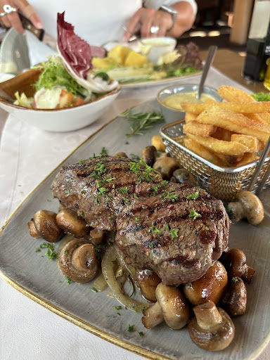 Vom kuschligen bis zum stielvollen Ambiente, wird hier jeder sein passendes Plätzchen finden. Klasse durchdachter, seitlich zu öffnender, ich nenne es mal „ Wintergarten“, wo auch die Akustik einem nicht in dem Glauben lässt, in einer Halle zu sitzen, was wohl an dem ebenso durchdachten Bodenbelag liegen wird. Man wird sehr herzlich und charmant begrüßt und bekommt nicht den Eindruck vermittelt, dass man stören könnte, ganz im Gegenteil. Beim zügigen bringen der Speisekarte, wurde uns mit einem Lächeln im Gesicht mitgeteilt, dass der Koch keine Eier mehr hätte🥳 was natürlich schon mehr als nur zum schmunzeln anregte und sowas auch mal auf einem Pfingstmontag Abend passieren kann/darf. Nach der Weinfrage uns endlich einmal nicht nur der übliche „Pino Quatsch“ aufgezählt wurde, wurden wir ein weiteres Mal positiv überrascht. Als Vorspeise hatten wir Bruschetta und Rindercarpaccio, wobei letzteres vergessen wurde in der Küche zu bestellen, was der netten Bedienung sichtlich unangenehm war und auch das mal passieren darf. Dieses kleine Missgeschick wurde aber sofort mit einem Getränkewunsch auf Haus, was wir nicht erwartet oder vorausgesetzt hätten, sofort wieder gut gemacht und es gab sogar ein Glas Grauburgunder, was bei den heutigen,normalen Preisen ganz sicher nicht zur Selbstverständlichkeit gezählt werden sollte, ein „Lüdder“ wäre da schon ausreichend gewesen aber auch nicht zwingend notwendig. Das Rindfleisch kam dann natürlich noch, was man allerdings schon mit extra Balsamico und Essig servieren darf/sollte, Menagen stehen ja auf dem Tisch, ist nun aber auch jammern auf etwas höherem Niveau, man kann ja auch nachfragen weil es wird ja nichts kalt und auf der Flucht waren wir nun auch nicht wirklich😉. Der bestellte Spargel mit den gängigen Beilagen, gefolgt von einem extra bestellten, sensationellen 250g,auf Wunsch Medium gebratenem Rumpsteak übertraf unseren Erwartungen um Längen, im übrigen wurde nach der Bestellung der Hauptgänge dann auch ein Steakmesser eingedeckt.So ist es eigentlich auch fast nicht zu erwähnen, dass mein Rumpsteak nach „Art des Hauses“ neben der Bearnaise und den krossen,dicken Pommes, nochmal von leckeren,im ganzen gebratenen Champignons und Kräuterbutter ( die nicht mit auf der Karte stand) getopt , neben den knackigen,frischen Salat natürlich, der nicht im Dressing ertränkt wurde. Ein Dessert haben wir uns geschenkt. Sehen durften wir aber die angebotenen Süsspeisen, die auf einer Tafel geschrieben an den Nachbartisch gebracht wurde,klasse. Auf bitten zahlen zu wollen, wurde uns dann nochmal ein Absacker angeboten, was dann den Abend und den Besuch im „Wessels“ Perfekt abgerundet hatte. Fazit- da ich Restaurantbesuche immer aus der gastronomischer Sicht sehe, was für mein Umfeld auch anstrengend sein kann,sorry dafür, so gibt es hier aus meiner persönlichen Sicht nun rein gar nichts zu meckern, kleine Missgeschicke oder Ähnliches wurden schlicht weg, auf eine lockere, dennoch charmante Art und Weise sofort in die Vergangenheit katapultiert und die servierten Teller,speziell die Steaks hatten fast schon Seltenheitswert. Ganz lieben und tausend Dank, für den versprochen nicht ersten und einzigen Abend bei Euch, uns habt Ihr gepackt😉. Lg und...