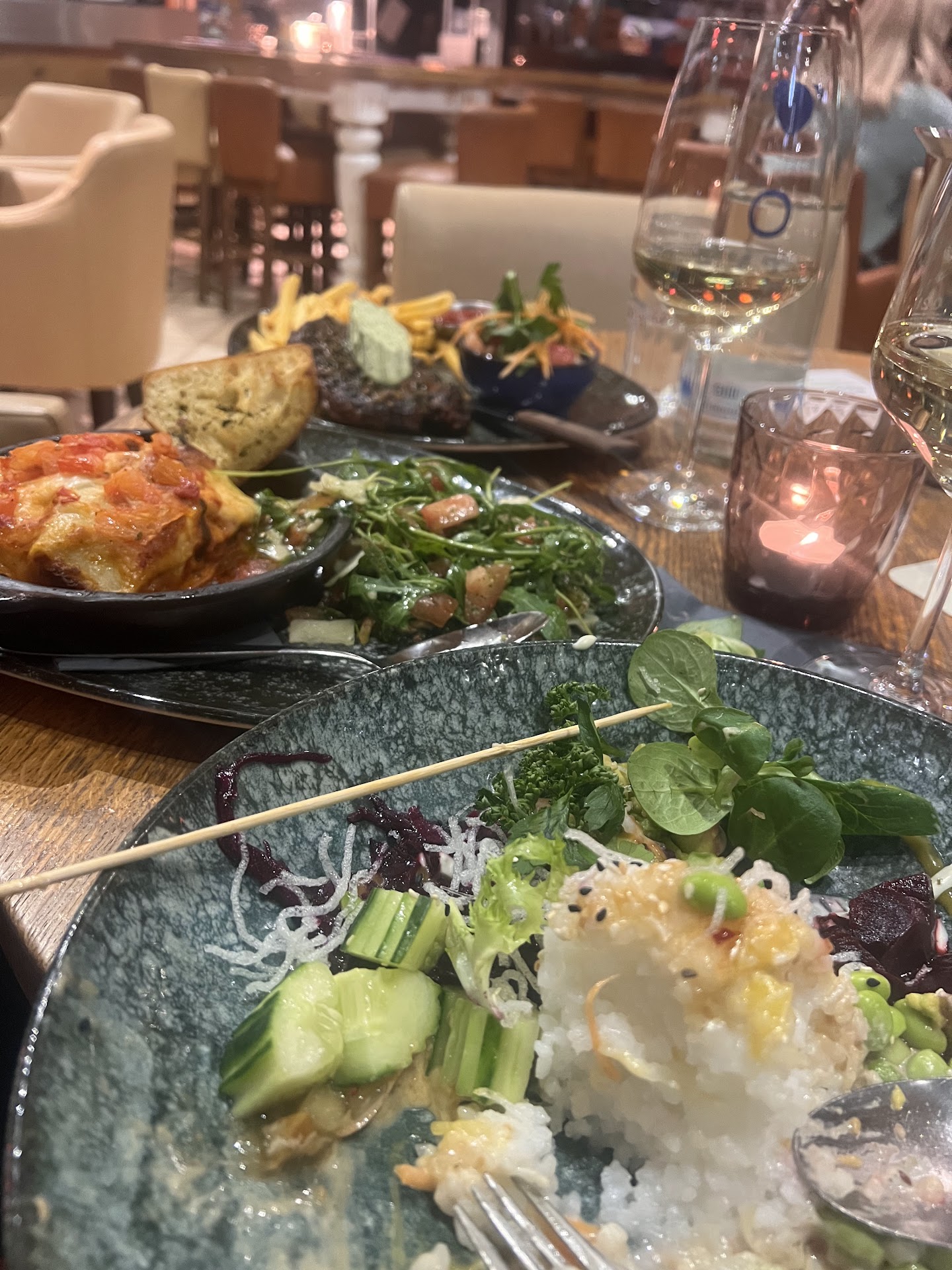 I tried a variety of their alcoholic drinks, with my favorite being the "Swimming Pool." As for dessert, I loved their churros, strawberry cheesecake, and red velvet cake. Sometimes the cake tasted a bit too grainy and old, which is likely from it sitting in a glass cabinet on display. This has happened enough times that it was a pattern, and dampened my experience a little bit. The drinks on the other hand? Always perfect.