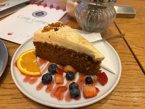 Read moreEssen und Getränke Habe einen Karottenkuchen gegessen, welcher sehr lecker war. Über den Geschmack hinaus war dieser, wie man an dem Bild sehen kann, auch aufwendig angerichtet. Die Akzente machen das Ganze schöner. Habe einen Karamellchino getrunken. Für Leute, die gerne einen süßen Kaffee trinken ist das der Hit. Sehr lecker und süß.