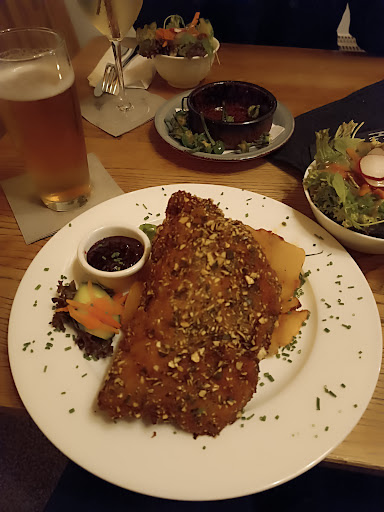 Read moreEssen wie in einer oldschool Villa, mit den hohen Decken und dem Stuck, von der Gemütlichkeit her aber wie in einem Wohnzimmer bei Freunden oder in der WG-Küche🤔😀 Ganz nettes, lockeres Ambiente, dies spiegelt sich bei den Angestellten sowie Gästen wieder. Man pflegt einen freundlichen Umgang miteinander. Ein Gast hatte Geburtstag an dem Tag als wir dort waren und der ganze Raum sang Happy Birthday, genial. Tolle Geste 😃 Bei den Speisen gibt es Hausmannskost und auch Speisen "neu" zusammengestellt/aufgepeppt. Lecker. Auf dem Foto zu erkennen: Mojito und ein Cordonbleu gefüllt mit Bergkäse (kein stinki) und rohem Schinken, paniert in Kürbispanade. Lohnt sich vorbeizuschauen.