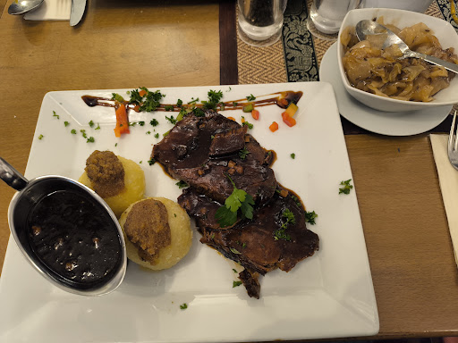 Read moreIch kann gar nicht genug von meinem letzten Besuch in der "Königlichen Bratkartoffel" erzählen - Es war der absolute Knaller! Also, die Einrichtung dort ist einfach so urig, dass man sich fühlt, als wäre man in einer Zeitmaschine gelandet und im besten Sinne in Omas gute Stube zurückgebeamt worden. Kein Schnickschnack, keine übertriebene Deko - einfach nur gemütlich und einladend! Aber das ist noch nicht alles - da ist Ben, der Barkeeper! Selbst in den hektischsten Momenten bewahrt er stets die Ruhe und füllt die Gläser mit beiden Händen gleichzeitig, als wäre es ein Kinderspiel. Es ist einfach unglaublich, wie er das schafft. Und das Essen! Das Gulasch war einfach nur zum Reinlegen und die eingelegten Matjes Heringe waren eine wahre Geschmacksexplosion! Sehr zu empfehlen! Aber das Highlight war definitiv der Wirt, Uwe Seel. Er ist wie eine lebende Comedy-Show - so voller Energie und Unterhaltung! Ich habe mich gefühlt, als wäre ich in einem Film gelandet, und ich wollte nicht, dass der...