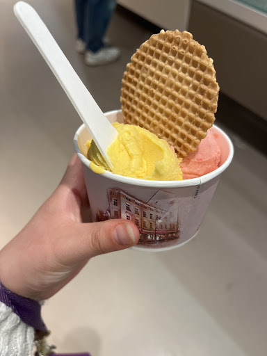 Read moreWe've been here numerous times since moving to Wiesbaden 5 years ago. Prices have increased from €1 for a one scoop cone to €1.30 (April 2018). Scoops are on the small side, but the taste and convenience makes up for it. Located on the left corner of the Market Square where the farmer's market are held on Wednesdays and Saturdays. There is a free bathroom downstairs. Employees are usually polite but when it gets busy, and it always does, they can get a bit testy and irritated from time...