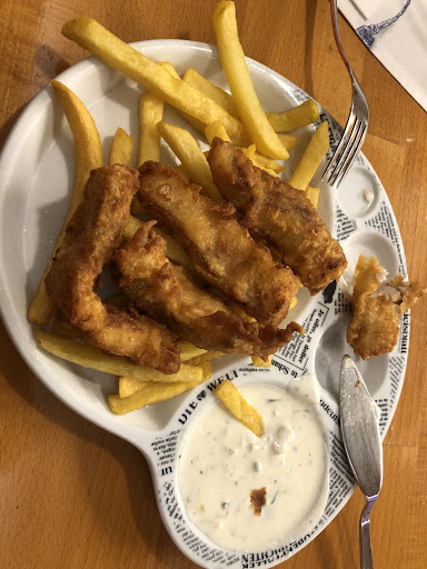 Nachdem ich im Außenbereich Platz nahm und mehrere Minuten wartete (ohne bedient zu werden), ging ich hinein, da ich unsicher war, ob man vielleicht im Innenbereich bestellen müsste. Auf meine Frage nach Fish & Chips wurde ich an den Außenbereich verwiesen. Ich wollte dennoch gerne vor Ort essen und sollte gemäß der Bedienung nach einem Teller bitten. Gesagt - getan! Der Verkäufer fragte ich mich noch, an welchem Tisch ich säße und ich deutete ihm in die Richtung. Das Geld für das Gericht legte ich ihm auf der Bezahlunterlage am Tresen ab. Kurze Zeit später wurde mein Gericht ausgerufen - ich war irritiert, weshalb es nicht gebracht wurde, da er ja noch nach dem Tisch fragte. Beim Abholen verlangten sie den zuvor gezahlten Betrag von mir - mein Geld hätten sie nicht zuordnen können und haben es einem anderen Gast als Wechselgeld gegeben 😏 Zum Glück war dieser noch in der Nähe und konnte es zurückgeben. Anschließend ging ich zurück zu dem Tisch, um in Ruhe zu essen. Kurz darauf kam die Bedienung vom Anfang heraus und wies mich darauf hin, dass ich nicht im Sitzen essen dürfte, da ich ja draußen bestellt hätte. Ich müsste sofort an den Stehtisch gehen. Fun fact: es war kein einziger Tisch im Freien besetzt! Ich verstand die Argumentation nicht und sagte, dass ich gerne aufstünde, wenn Gäste kämen (zu denen ich eigentlich auch zählte, aber gut). Offenbar gibt es auf der Karte des Servicebereichs keine Fish & Chips, sodass diese nur im Außenbereich verkauft werden und darauf eine andere Mehrwertsteuer fällt. Warum dieses Gericht, wenn man es auf einem regulären Teller im Außenbereich bestellen und vor Ort verspeisen kann, nicht auch regulär auf der Speisekarte für den Innenbereich steht, verstehe ich nicht. Ich wollte in Ruhe aufessen und schon besuchte mich die nächste Mitarbeiterin. Diese noch unfreundlicher und mich der Dummheit bezichtigend! Sie argumentierte damit, dass ich an den Tischen aufgrund des Services mehr zahlen müsste. Ich wäre dazu bereit gewesen und deutete dies auch an. Das nächste Argument war jedoch, dass es das Gericht doch aber gar nicht auf der Karte des Innenbereichs gäbe. Diese Argumentationskette wiederholte sich ein paar Mal und sie wollte nicht verstehen, dass diese Regelung keinen Sinn ergibt. Es war mir dann irgendwann auch zu blöd, weiterhin in dieser unangenehmen Atmosphäre vor Ort zu sein. Das Geld ließ ich mir wieder geben. Zum Glück bekamen es einige Kunden mit, die sich für den Take-Away anstellten und sagten ebenfalls, dass es unlogisch sei und sie sich unhöflich verhalten haben. Man hätte es kundenorientiert lösen können und mich einfach in den Innenbereich setzen oder mich diese Portion einfach kulanterweise aufessen lassen können. Ich teilte ihnen noch mit, dass dieses Verhalten sehr geschäftsschädigend ist, worauf lediglich frech geantwortet wurde, dass dies nicht ihr Geschäft...