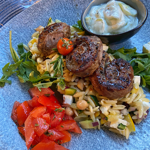 As a starter we ordered octopus accompanies with orzo salad and it was amazing - the tentacles were tender and very nicely seasoned. I chose grilled lamb fillet on chickpea-feta-orzo salad with marinated tomatoes and rocket for the main meal and I was extremely well surprised! I cannot fault anything, it was one of the best meals I have had in a very long time! The flavors, textures, combinations - all perfectly matched and balanced with each other. My friends very much enjoyed their meals too and mentioned the fish meals were delicious as well (it is always a bit tricky to find fresh seafood hundreds of miles from the coast line, but not here). Apuglian primitivo perfectly matched our meal choices.