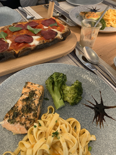 We opted for the set lunch, which included a salmon pasta and a pizza. The salmon pasta was particularly outstanding, with perfectly cooked pasta and a flavorful sauce that complemented the fresh salmon beautifully. Each bite was a delightful combination of textures and tastes.
