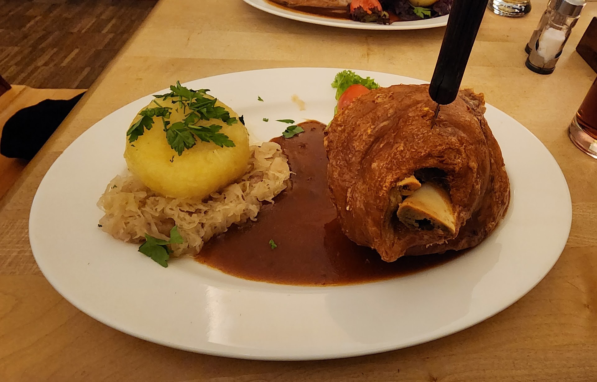 Food was alright. Nothing great. We each got the pork knuckle, probably the largest either of us had seen before. The flavor was overwhelmingly salty and much fatties than I have ever had in the past. The real problem was the wait. 5 minutes before drink order. Another 7 minutes before drinks arrived. Another 10-15 minutes before food order was taken. Then another 45 minutes before one of the appetizers arrived. One of the appetizers never came out. Then another 25-30 minutes before the food arrive. All in all around 90 minutes from sit down to food arriving. The place was busy and we were informed the kitchen was 'busy,' however im pretty sure the server forgot to put our order in as other tables who ordered after were finishing or finishing eating by the time we got our food. If it was just the kitchen, then the kitchen isn't prepared to nor able to handle a Saturday evening crowd. I have heard other people I know state they don't go because of the wait times. This was my first time going myself, and...