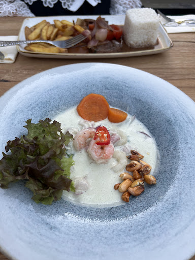 Read moreThe location is excellent – the outdoor seating is wonderfully relaxing, even when the restaurant is full. The downstairs indoor area is also quite unique: cozy, private, and with a special atmosphere. The staff were friendly and attentive throughout our visit. The food stands out with great flavors and thoughtful presentation. Prices are on the higher side, but the experience makes it worth trying. The wantan were especially good – crispy and generously filled. The tuna with maracuja sauce was a bit too sour for my taste, as the sauce seemed to be pure maracuja. A better balance might be achieved by combining the tuna, mashed carrot, and salad in one bite. The ceviche was fresh and flavorful, though the portion was relatively small for the price – still understandable given the quality. The steak was cooked perfectly. The sauce had a strong, smoky aroma that was very appealing – rich in flavor without being...