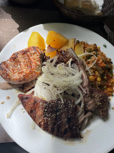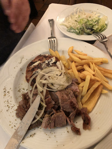 Read moreKein authentisches griechisches Restaurant. Service war freundlich, aufmerksam und zuvorkommend. Die gemischte Vorspeisenplatte war mittelmäßig, das Tsatsiki war gut, frischer Geschmack, allerdings hätte es einen Spritzer Zitrone vertragen können und etwas mehr Knoblauch. Das Fladenbrot war das beste an der Vorspeise (insgesamt auch das Beste am gesamten Abend). Taramasolata war zu kompakt, fest und hatte wenig Geschmack. Der eingelegte Octopus war ein Fertigprodukt und hat nach Kühlschrank und zu stark nach Fisch geschmeckt (nicht frisch). Gefüllte Champignon waren ok, Weinblätter auch ok. Die gebackenen Auberginen waren gut zubereitet und sehr lecker. Als Hauptspeise gab es Bifteki und Calamares. Die Bifteki waren eine undefinierbare rosa Masse, die erstens total versalzen waren und zweitens einen ekelhaften Beigeschmack hatten. Die Calamares waren sehr gut zubereitet, allerdings war die Panierung auch hier versalzen. Der Lammspieß, der als Ersatz für das ungenießbare Bifteki gebracht wurde, war leider auch ungenießbar, penetranter Stallgeschmack (und zuviel Salz). Die Beilagen - gedünstetes Gemüse - waren ohne jegliche Finesse und relativ geschmacksneutral. Im Gastraum riecht es unangenehm nach Toilette und Urinalduftstein. Wir kommen...