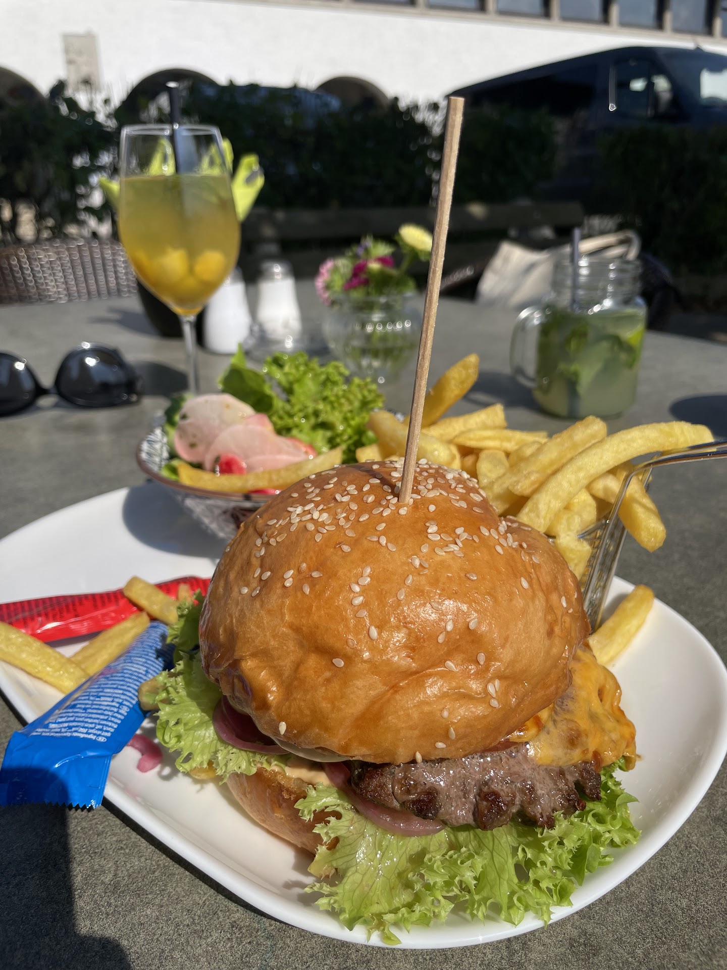 Wir aßen dann quasi alle notgedrungen Salat (bzw einer Steak) mit einer zusätzlichen Portion Pommes. Der Salat war geschmacklich ok, bestand aber quasi aus einem Haufen riesiger Salatblätter. Für Veganer leider keine Optionen bis auf den Salat vorhanden (falls es jmd. interessiert).