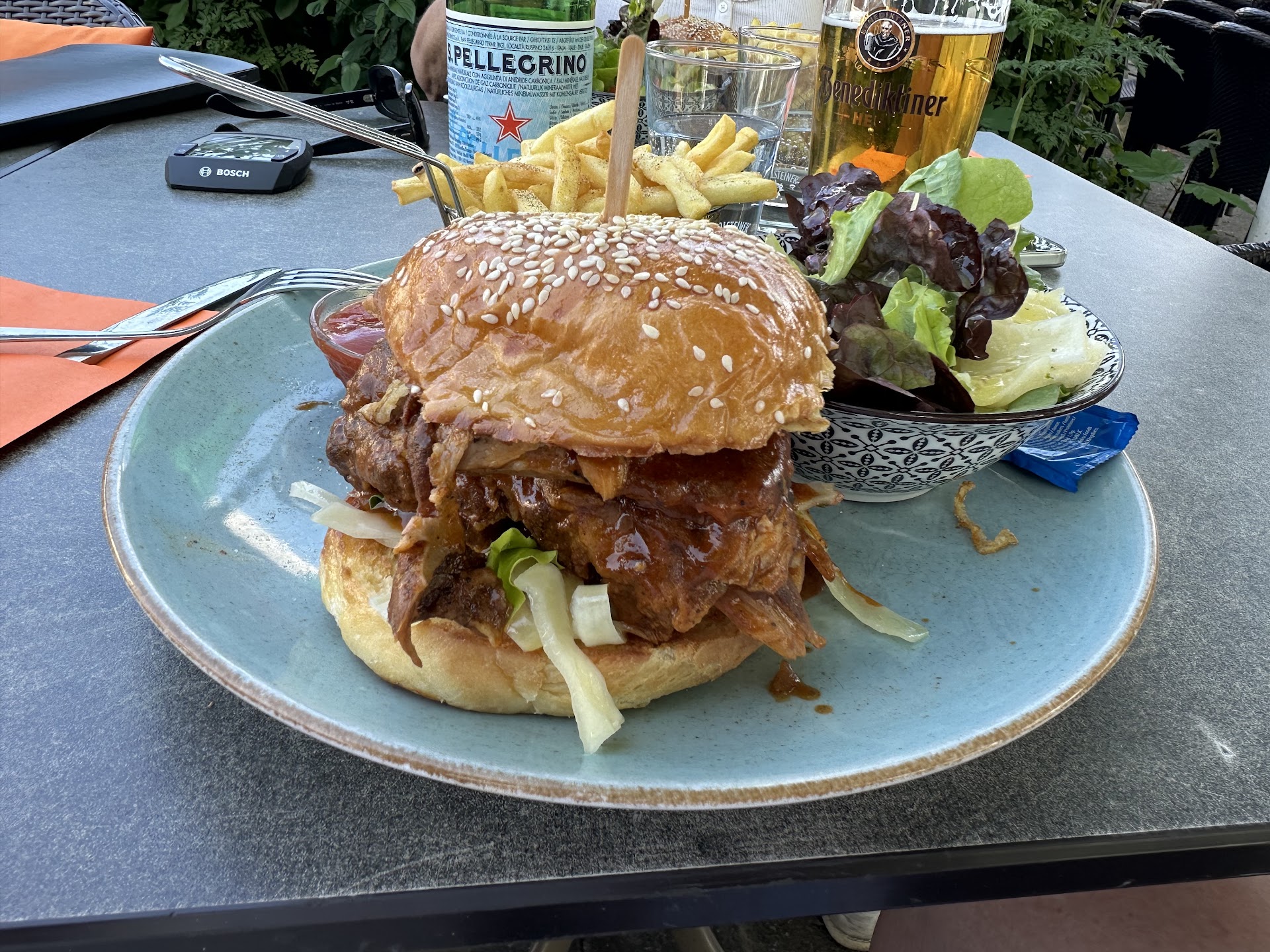 Somit wurde die schon ohnehin kleine Karte quasi komplett nutzlos. Wir überlegten aufzustehen und uns etwas anderes zu suchen, aber der schöne Platz war dem Geburtstagskind wichtiger, als ein quasi geplatztes Essen.