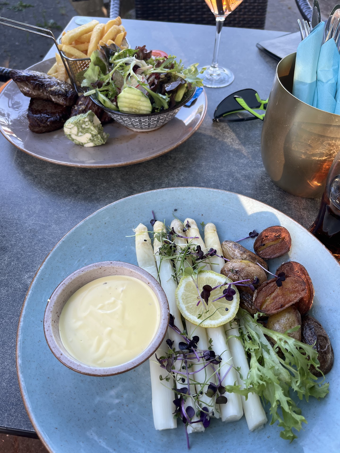 Wir aßen dann quasi alle notgedrungen Salat (bzw einer Steak) mit einer zusätzlichen Portion Pommes. Der Salat war geschmacklich ok, bestand aber quasi aus einem Haufen riesiger Salatblätter. Für Veganer leider keine Optionen bis auf den Salat vorhanden (falls es jmd. interessiert).