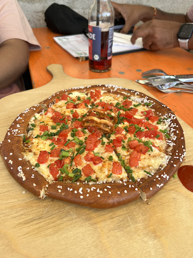Read moreWat krijg je als je een pretzel met een pizza laat daten? Juist — de bizarre, briljante creatie die ze hier gewoon als avondeten serveren. Flammkuchen-stijl, maar dan met worst, spek, en een korst die rechtstreeks uit een Beiers bakboek lijkt te komen. Pretzel crust. Ja echt.