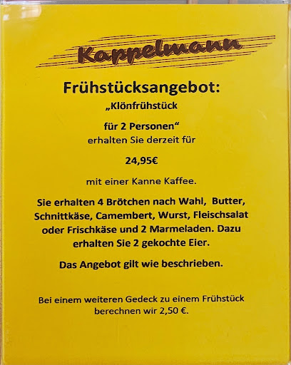 Read moreFrühstück, habe mir bei einem Frühstück für 9,95 € mehr versprochen. Keine Vollkorn-, oder Roggenbrötchen vorhanden. Habe mit meiner Schwester dann Mehrkornbrötchen bestellt, genauso wollte meine Schwester ein Kännchen Kaffee, aber obwohl die Bedienung sich alles auf einem Zettel vermerkt hat, wurde nur ein Mehrkornbrötchen und auch nur Kaffee im Pot serviert. Also einmalig und...