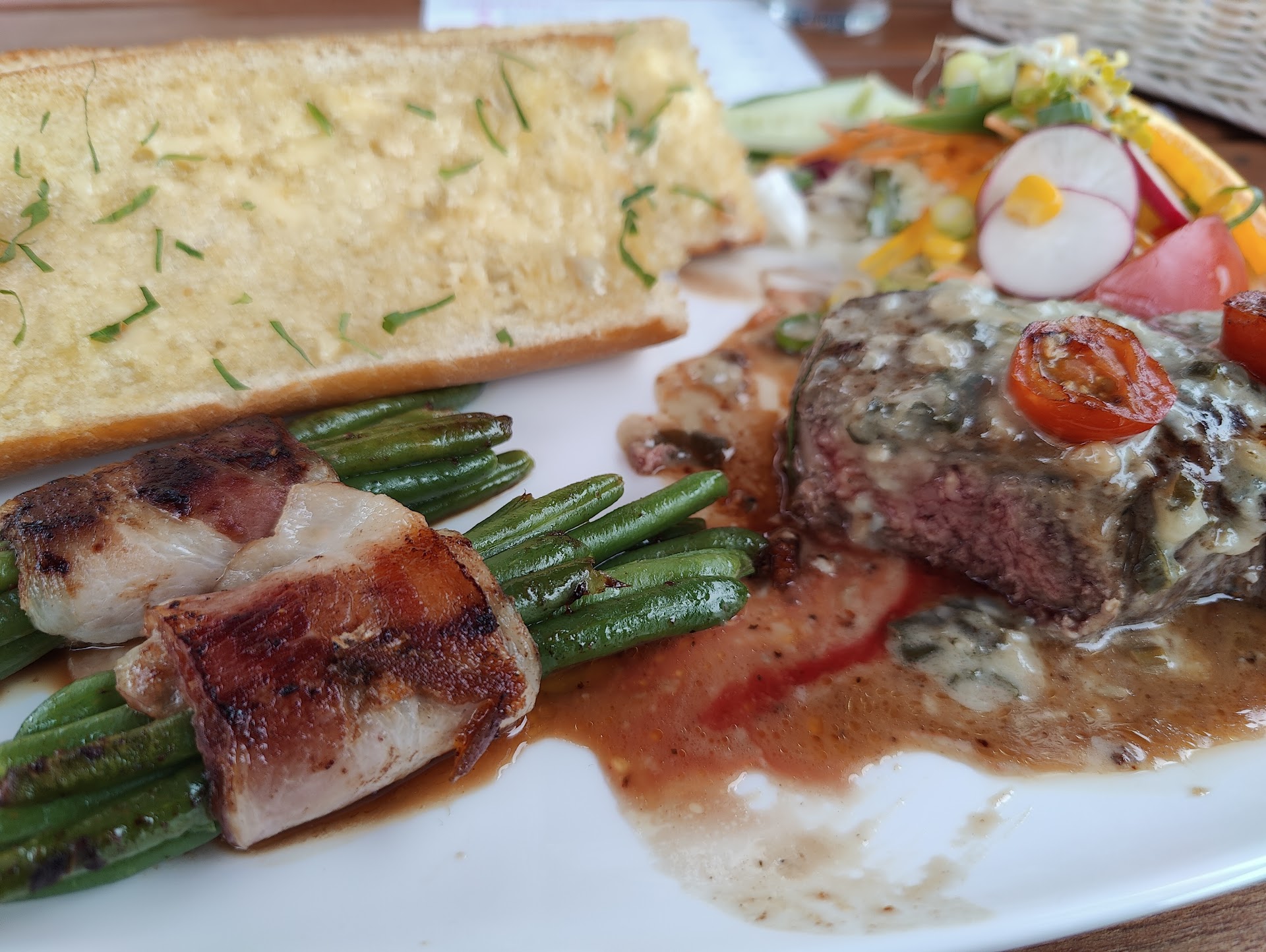 Bei schlechterem Wetter sorgt der Terrassenbereich mit Heizstrahlern für gemütliche Wärme – vorausgesetzt, man trinkt nicht nur einen Kaffee. Insgesamt ein sympathisches Restaurant mit Potential für den letzten Schliff bei...