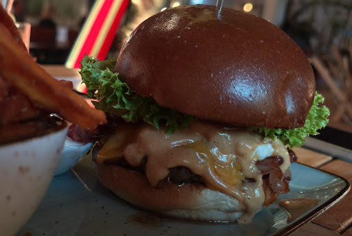 Kürzlich habe ich dort einen Cheeseburger gegessen, und ich muss sagen, er hat meine Erwartungen übertroffen. Der Burger war saftig, gut gewürzt und wurde mit frischen Zutaten zubereitet. Der Geschmack war einfach köstlich. Es war definitiv ein Genuss, den Burger in dieser entspannten Umgebung zu genießen.