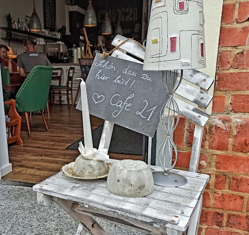Erst Top jetzt Flop Café 21 nach der Eröffnung ein echtes Highlight in Wildau, Loft/Wohnzimmer Atmosphäre und ein sehr nettes Start up Team. Preise waren zwar von Anfang an annähernd auf Kudamm Niveau und dies hat auch Anlass zu einigen Kritiken im Netz gegeben, aber die Qualität der Speisen und des Kuchens sowie die originelle Stimmung haben dies m. E. kompensiert. War häufig mit Studenten, Doktoranden und Kollegen dort, alle waren positiv überrascht von dieser Location und der THW. Vor ein paar Tagen dann der Flop. Eine männliche Bedienung mit Türsteher Charme baute sich am Eingang vor uns auf und konfrontiere uns mit der Frage ob wir denn reserviert hätten. Angesichts des halb leeren Cafés schien uns die Frage etwas provokant und wir entgegneten, dass dies bisher nie erforderlich gewesen sei. Mit dem Verweis, dass dies nun aber doch notwendig sei, wurden uns ein Platz in der letzen Ecke beim Ausgang zur Toilette zugewiesen. Die Bestellung nahm der Türsteher mit der Metzgerschürze unwillig, wie in einem überfüllten Imbiss auf. Als dann der bestellte “kalte Hund” kam, konnte ich mir nicht verkneifen anzumerken, dass es sich angesichts der servierten dünnen Keksscheibe aber um einen magersüchtigen kalten Hund für € 3,20 handele, war der letzte Rest an Contenance aus dem Gesicht der Türsteherbedienung verschwunden und wir wurden minutenlang lauthals belehrend informiert, das er die Preise nicht gemacht habe und eine Rückgabe oder eine Rücksprache mit der verantwortlichen Chefin wurde erneut in Türstehermentalität mit dem völlig unzutreffenden Vorwurf abgewehrt, ich hätte meinen Kopf zuweit am Kücheneingang in Richtung Chefin geneigt um ein klärendes Wort auszutauschen. Chefin hat sich trotz Bitte um Klärung leider hinter dem Türsteher weggeguckt. Na ja, € 13,20 für ein Stück Kuchen und zwei kleine Cappuccino bezahlt, dieses Mal hat die Stimmung nicht das Preisniveau kompensiert, schade! Erlaube mir den Hinweis, dass so eine völlig inkompetente und cholerische Bedienung, die offenbar Gäste mit Bittstellern um knappe Ressourcen verwechselt, vieles kaputt machen kann, das wäre sehr schade um dieses bisher nette Café. Übrigens war der Laden nach unserem wenig erbaulichen Aufenthalt immer noch ziemlich leer, soviel zur notwendigen...