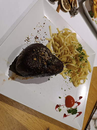 Bei meinem Besuch im Restaurant entschied ich mich für das „Dry Aged Entrecôte“ für 30€, ein Preis, der eine gewisse Erwartung an Qualität und Geschmack weckt. Leider entsprach das Gericht nicht ganz diesen Erwartungen. Besonders auffällig war die ungleichmäßige Zubereitung des Fleisches, welches außen stark angebrannt wirkte und innen von „Rare“ bis „Well Done“ reichte, was die Konsistenz und den Genuss erheblich beeinträchtigte. Zudem schienen die Gewürze aufgrund der starken Röstung übermäßig verbrannt, was den Geschmack des Fleisches negativ beeinflusste.