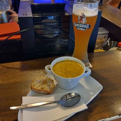 The portions are extremely generous so I opted for a delicious lobster cream soup and a shrimp cocktail, which were both tasty freshly prepared and very good value. Topped off with a Weiss beer I was very happy sitting at the bar!! Thank you the whole team at Banter Ruine and especially the very friendly English speaking Owner ✅👍💯