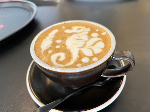 Als ich im Cafe, vor der großen Theke stand, habe ich bei einem freundlichen Mitarbeiter meine Bestellung aufgegeben. Dabei lief sanft, nicht zu laut, im Hintergrund R&B Musik. ( Rhythm and Blues)