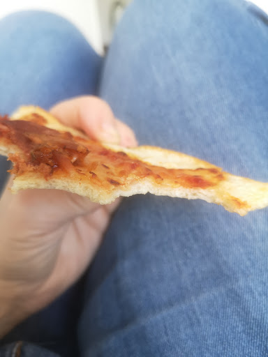 Das Essen: Mit der Pizza sind sie gefühlt zwei mal am Ofen vorbeigerannt und danach ab in den Karton. Denn zum einen war sie nicht mal ansatzweisse heiß, und zum anderen war der Teich noch leicht weiß klebrig - also auf keinen Fall richtig durch. Der Belag ist echt eine Zumutung, draufgeklatscht, scheiß egal ob der Belag schon aussieht als ob er zwei Tage in der Sonne gelegen hätte, Hauptsache fertig. Also wirklich einfach nur ungenießbar.