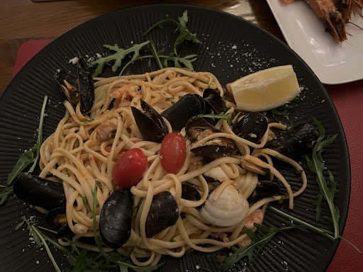 Die pizzen sollen laut meinen Freunden gut gewesen sein. Die Pommes allerdings waren kaum gewürzt und schmeckten nur nach labrieger Kartoffel. Die Tortoloni in Sahne Soße waren wirklich lach Haft.... Die Soße hatte die konsestenz von Wasser und schmeckte nur leicht nach Milch mit Wasser ... Haben sie über Nacht stehen gelassen und am nächsten Tag konnte man sie dann einigermaßen essen, was ja auch nicht Sinn der Sache ist. Das war wohl das erste und das letzte...