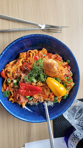 Read moreWir haben uns einen schönen Tisch in der Sonne frei wählen können. Anfangs war der Service sehr aufmerksam. Wir wählten eine Spinatpizza, die angeboten wurde, für uns zwei Personen gleich geschnitten serviert zu bekommen, was nicht der Fall war, jedoch dann nachgeholt wurde. Sie schmeckte vorzüglich. Danach entschieden wir uns, noch das Rumpsteak-Gericht mit Calvadossoße zu teilen. Dieses Gericht kam gleich aufgeteilt auf zwei Tellern angerichtet, was uns sehr erfreute. Es war alles sehr wohlschmeckend, jedoch fehlte es an Gewürz, sodass wir gleich baten, uns Pfeffer zu reichen. Dieser wurde letztendlich erst gereicht, als ich mir das letzte Stück Fleisch in den Mund schob. Abzuwarten bis das Gewürz gereicht wird, war keine Alternative, da das Gericht kalt wurde und der Service auf sich warten ließ. Es gab auch keine Wiedergutmachung, nur die Kenntnisnahme, dass das Gewürz zu spät gereicht...