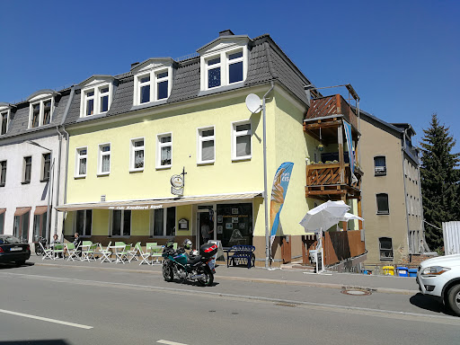 Direkt an der Hauptstraße gelegen fanden wir im Gastraum doch die Ruhe , die wir suchten um unser alljährliches "Familientreffen " bei Kaffee und Kuchen ausklingen zu lassen. Eine opulent gefüllte Kuchenplatte hatte alles was das "Herz begehrt "zu bieten !! Auch von einer kleinen "Zusatzkarte" konnte man noch so einige Schlemmereien ordern. Davon wurde dann aus reger Gebrauch gemacht !!! Das Personal war flink und fleissig ! Das es unsere "Familientreffen " war werde ich keine Bilder posten. "Einheimischen " müsste diese Lokation jedoch gut bekannt sein !! Obwohl unser "Familientreffen" an einem Sonntag stattfand waren die Auslagen im Geschäft gut gefüllt und die Eistheke war stark frequentiert ( bei sommerlichen Temperaturen) !!! Gerne kehrt man wieder um zu...