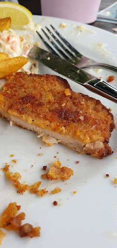 Read moreIf you wanna eat something good, do not stop here. Music too loud to eat inside, we were here in the early afternoon. We waited more than 30 minutes to get our snitzels...and they were not good at all. Dry, thin, deepfried - probably together with the fries which were also dry. Inside the floor was sticky. And the inside smoking was very strange to see in 2023? Maybe its a nice place for drinks and dancing in the evening but has nothing to do with a restaurant. I give this...