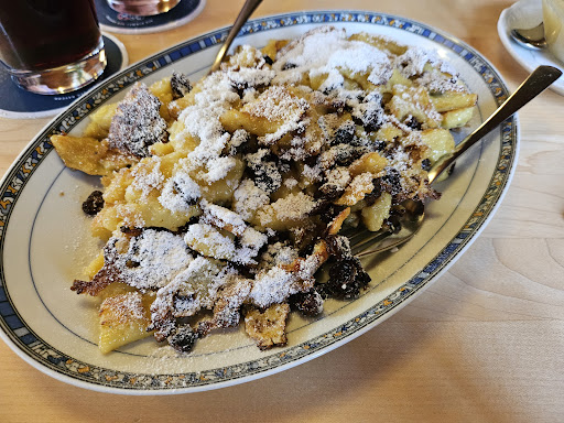 Was die kulinarischen Genüsse betrifft, sind wir ebenfalls nicht enttäuscht worden. Beim Saxenhammer bekommt man bodenständige Hausmannskost, die ehrlich zubereitet wird. Die Kartoffeln, Salate und Eier kommen aus eigenem Anbau. Der Kartoffelsalat, der aus diesen Kartoffeln zubereitet wurde, hat uns sehr gut geschmeckt, ebenso die Fleischgerichte wie das Cordon Bleu oder Fleischpflanzerl, die gekonnt in der Pfanne zubereitet wurden. Obwohl wir nach den Hauptspeisen schon ziemlich satt waren, wollten wir uns trotzdem die Nachspeisen nicht entgehen lassen und bestellten Apfelküchle und einen Kaiserschmarrn. Beide Nachspeisen waren nicht übersüßt und haben uns gut geschmeckt.