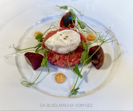 Read moreWir waren zu viert beim Staudenwirt zum Gourmet Essen, das immer am Freitag und Samstag im neu renovierten Kaminzimmer serviert wird. Das Ambiente ist modern nüchtern, leider etwas kühl, keine Blumen keine Bilder an der Wand. Der Service ist vorzüglich, sehr aufmerksam und hilfsbereit. Die Menükarte kommt in einem versiegelten personifiziertem Brief , so dass man richtig gespannt das Siegel öffnet. Man kann zwischen 3,5 und 7 Gängen wählen. Dabei gibt es bei Gang 1,5 und 7 eine Wahl zwischen zwei Gerichten. ||Das gesamte Menu ist absolut auf Sterne Niveau, man merkt, dass der sehr junge Koch in einem 3-Sterne Restaurant zuletzt gearbeitet hat. Erfreulicherweise wird alles nicht zu übertrieben dekoriert, die Geschmacksrichtungen sind alle klar erkennbar die Kombinationen ausgereift. Wir bestellten jeweils beide Varianten, so dass wir letztlich 10 Gang verkosten konnten. Es soll hier nur die Highlights hervorgehoben werden:||Als Vorspeise war sicherlich der zweierlei Aal mit unterschiedlichen Räucherarten serviert mit Lauch und Mais ein absolutes Erlebnis. Mir war nicht bekannt, dass es auch Ammersee Aale noch gibt. Herausragend bei den Zwischengängen, eine "Brotzeit" mit selbst gebackenem Brot, verfeinerter Biobutter, selbstgerechtem Geräuchertem und einer fantastischen Salami. Dies kommt aus der Hand des Vaters, der Metzgermeister ist. Sehr schön, dass der junge "Starkoch" das ganze selbst serviert und richtig nett erklärt hat. Auergewöhnlich auch der bayerische Salm genannt Huch, ein inzwischen recht seltener Fisch, der mit Topinambur und Löwenzahn köstlich zubereitet wurde. Bei den Hauptgerichten gefiel besonders die Taubenbrust mit Pinien und roten Beeten. Dies war sicher die feinste Taube, die ich seit langem serviert bekam. Beide Nachspeisen waren total unterschiedlich im Geschmack, die eine fruchtiger, die andere cremiger und schokoladiger, absolut gelungen. Wir wählten aus der kleinen aber feinen Weinkarte als Weißwein einen Gavi aus dem Piemont und einen sehr fruchtigen Montepulciano. ||Zusammenfassung: kulinarisch ein absoluter Höhepunkt mitten in der bayerischen Seenlandschaft, hätte aus unserer Sicht einen...