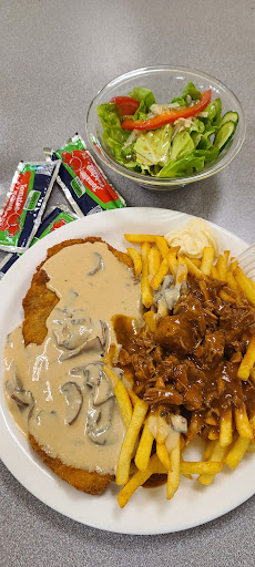 Wonderful fresh salads and hearty German food! The woman who runs it is friendly and so hardworking, even when she’s by herself she gets the food out quickly. There’s always 4 or 5 salad options and they’re so colorful and only fresh ingredients. You can also order burgers and fries and schnitzel. There’s usually two items on the menu that are weekly specials. The frikadelle with spaetzle is amazing and so filling for only 8€ and that includes a side salad! They’re also open for breakfast! Clean seating area with TV, clean bathrooms, and beautiful views...