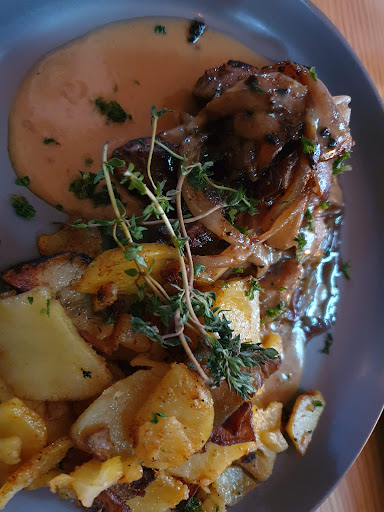 The atmosphere is absolutely delightful and sophisticated. The waitstaff were incredibly attentive and friendly. However, I must express my dissatisfaction with the exorbitant prices. The steak I ordered was overcooked and dry, with an excessive amount of gristle that made it difficult to consume, all for the price of 30 euros. Additionally, they topped it off with an overcooked and mushy mesh of onions. The steak lacked any discernible flavor and was of poor quality.