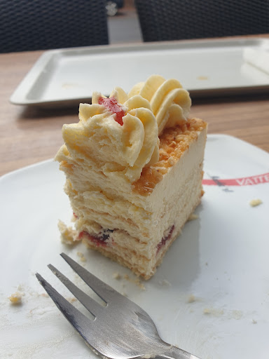 Read moreWofür eine Terrasse, wenn fast immer zu? Es sind draußen 16°, es regnet nicht, angenehmes Wetter. So hab ich heute mein Kaffee genossen, verdammt bequem, auf eine Stuhllehne. Es war gerade nicht viel los, das Personal hätte auch kurz aufschließen können, aber ne, wohl keine Lust... Aber den Anspruch am Gast haben, dass dieser sein Geschirr später in den Wagen stellt?! Wer so seine Kunden behandelt, kann später auch keine Ansprüche stellen. Wenn ich mir bei Vatter nochmal ein Kaffee gönnen werde, werden meine Sachen aus Prinzip draußen stehen gelassen. Heute war ein Stern...