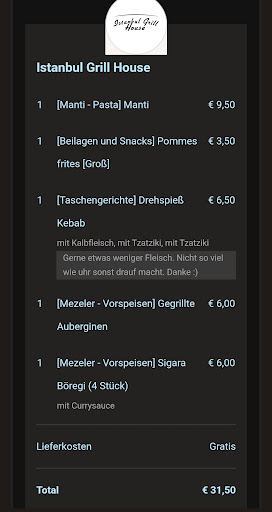 Read moreIch habe im Istanbul Grillhouse bestellt und mir wurde eine Lieferzeit von 20 Minuten zugesagt. Als ich nach etwas mehr als einer Stunde dort anrief um zu fragen wie weit meine Bestellung wäre, sagte man mir sie sei gleich fertig. Fazit: Das Essen kam nach einer Lieferzeit von 1,5 Stunden. Ein Gericht wurde statt mit Hähnchenfleisch mit Rindfleisch geliefert. Bei der Dönerbox fehlte die Sauce. Die Bestellte Kumpir war eher Kartoffelbrei, es war keine gefüllten Backkartoffel wie ich es sonst gewohnt bin. Aus der Rechnung wurden wir leider auch nicht schlau, da auf ihr keine Beträge standen und diese auch sehr unleserlich mit Kugelschreiber geschrieben war . Nach telefonischer Nachfrage, wie sich die Endsumme zusammensetzt hat sich ergeben, dass wir mehr bezahlt haben als wir es gemusst hätten . Nun wurde uns ein Guthaben für unsere nächste Bestellung versprochen, dazu wird es aber von unserer Seite aus...