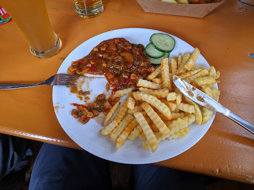 die Preisstruktur passt zum gehobenen Pommesbuden look, das Essen nur zu Pommesbude. Erbsensuppe oder eine Gulaschsuppe ohne Brot oder Brötchen? Vorher noch nie erlebt bei einem Preis über 5 Euro. Die Spaghetti mit Käse Soße matschig, die Pommes Currywurst okay nur teuer.