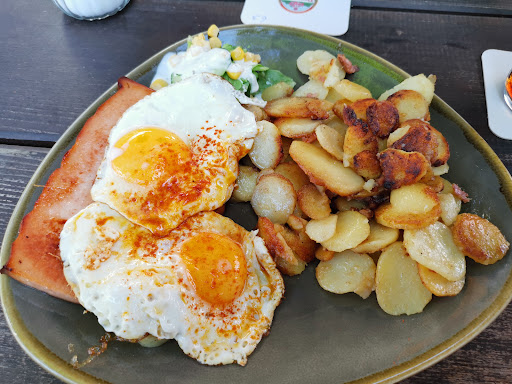 Das Essen war sehr lecker 😋 Leberkäse mit Spiegeleier und Bratkartoffeln. Die Bratkartoffeln sehr lecker gewürzt. Der Leberkäse so, wie er schmecken muss und die Spiegeleier nicht verkokelt.